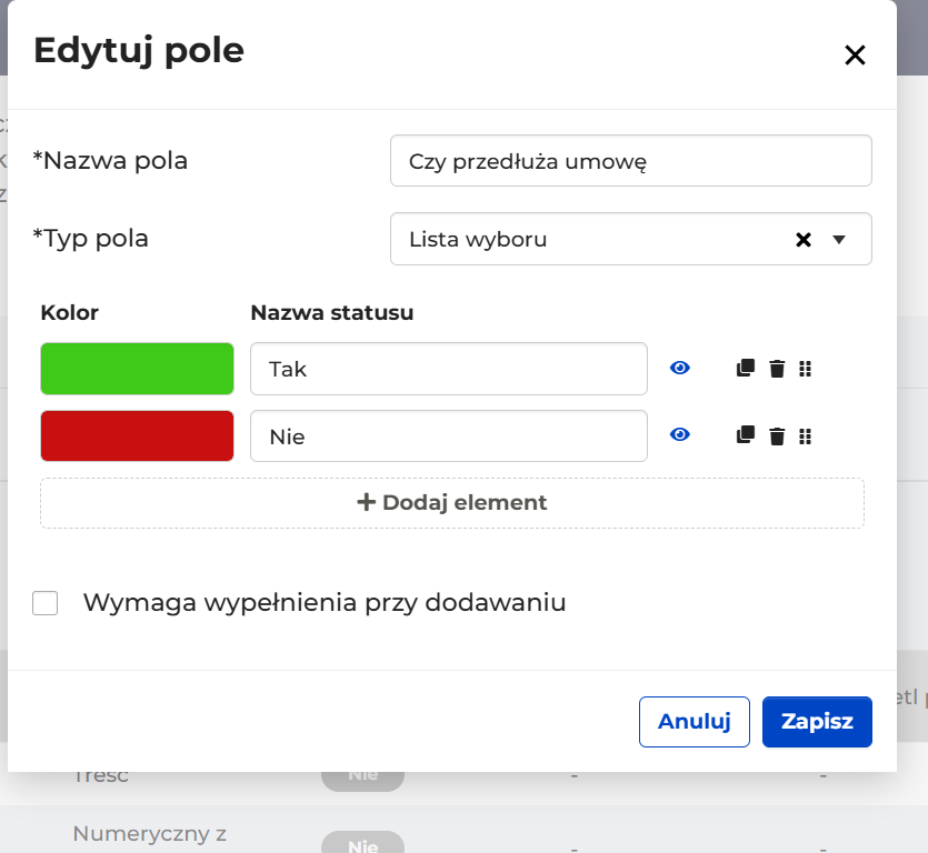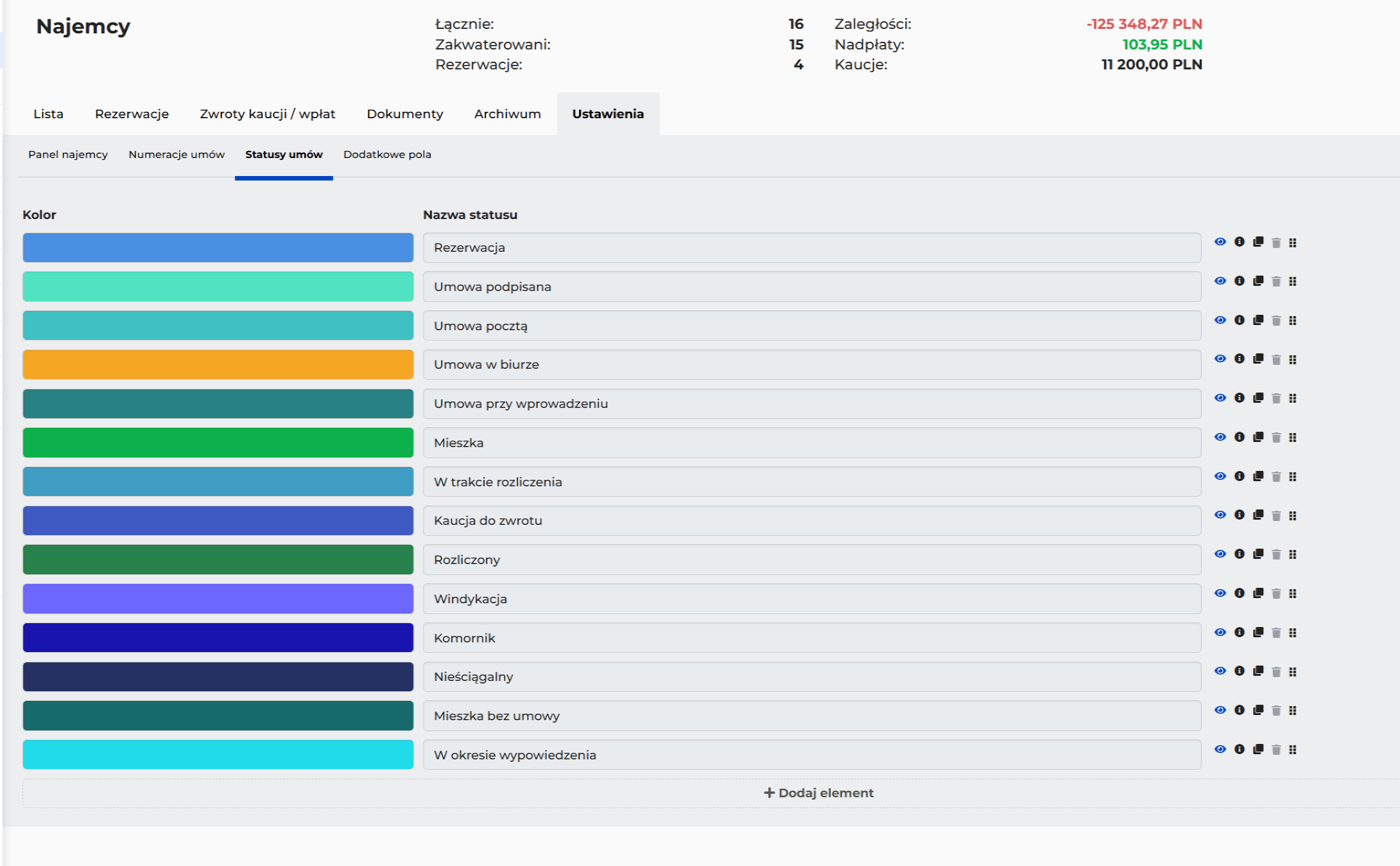 - Skorzystać ze statusów umów (możesz też dodać własne do już istniejących):